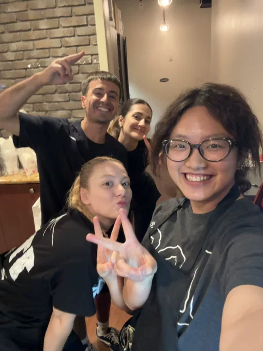 “刚开始时,我很紧张,生怕听不懂顾客的点单或者出错。但随着时间推移,我慢慢适应了快节奏的工作环境。早高峰时,一队客人还没走完,新的顾客就排到门外。后来我学会了分配任务,也能独立应对。印象最深的是一位叫 Maria 的同事,她经常提醒我‘Take it easy’,让我不要太紧张。”